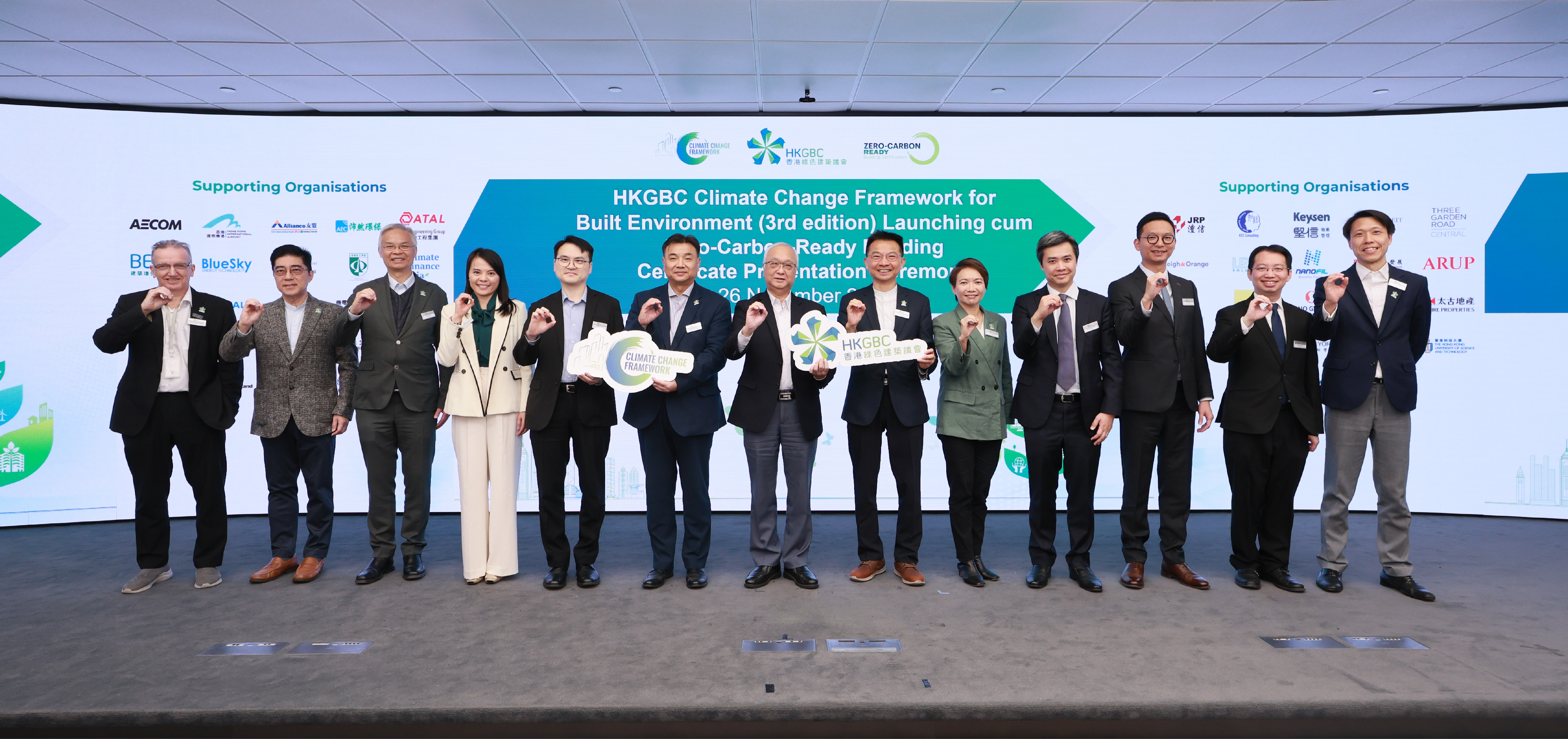 HONG KONG, 9 December 2025 – The Hong Kong Green Building Council (HKGBC) held the Zero-Carbon-Ready Building Certificate Presentation Ceremony on 26 November, presenting 35 certificates, bringing the cumulative total to 100 certificates to date. This marks a significant milestone for Hong Kong's building industry on the path towards net zero. At the same event, the HKGBC officially launched the Third Edition of the “Climate Change Framework For Built Environment”, which not only updates the original chapters but also features a new chapter on “Biodiversity & Nature-based Solutions”, further responding to the urgent global need to address climate change and ecological conservation, calling on the industry to leverage green finance to jointly tackle climate and ecological challenges.