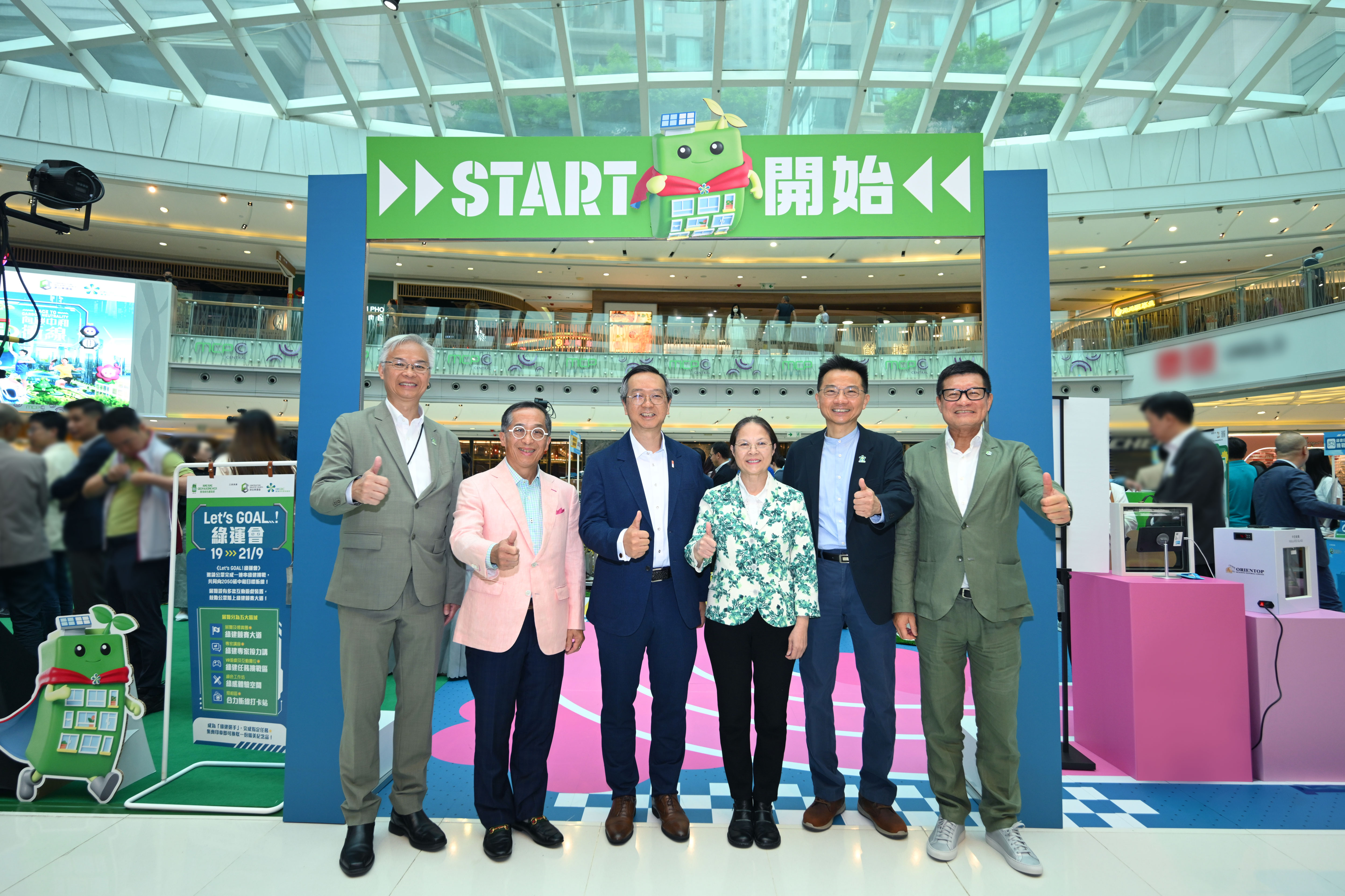 《Let's GOAL! 綠運會》讓公眾邊學綠建,邊玩運動主題遊戲攤位,是日出席啟動禮的嘉賓率先參觀展品及體驗各項互動遊戲。