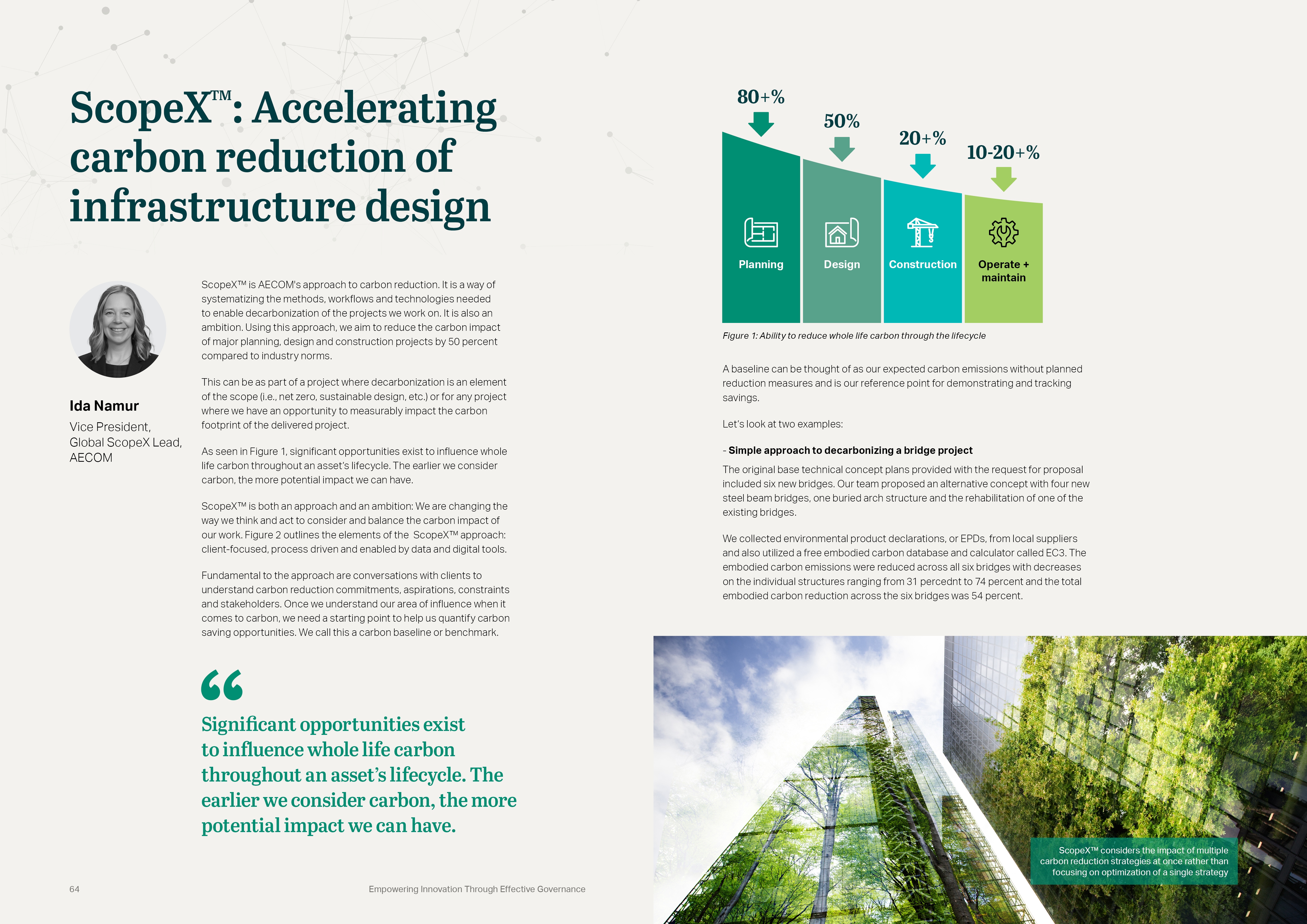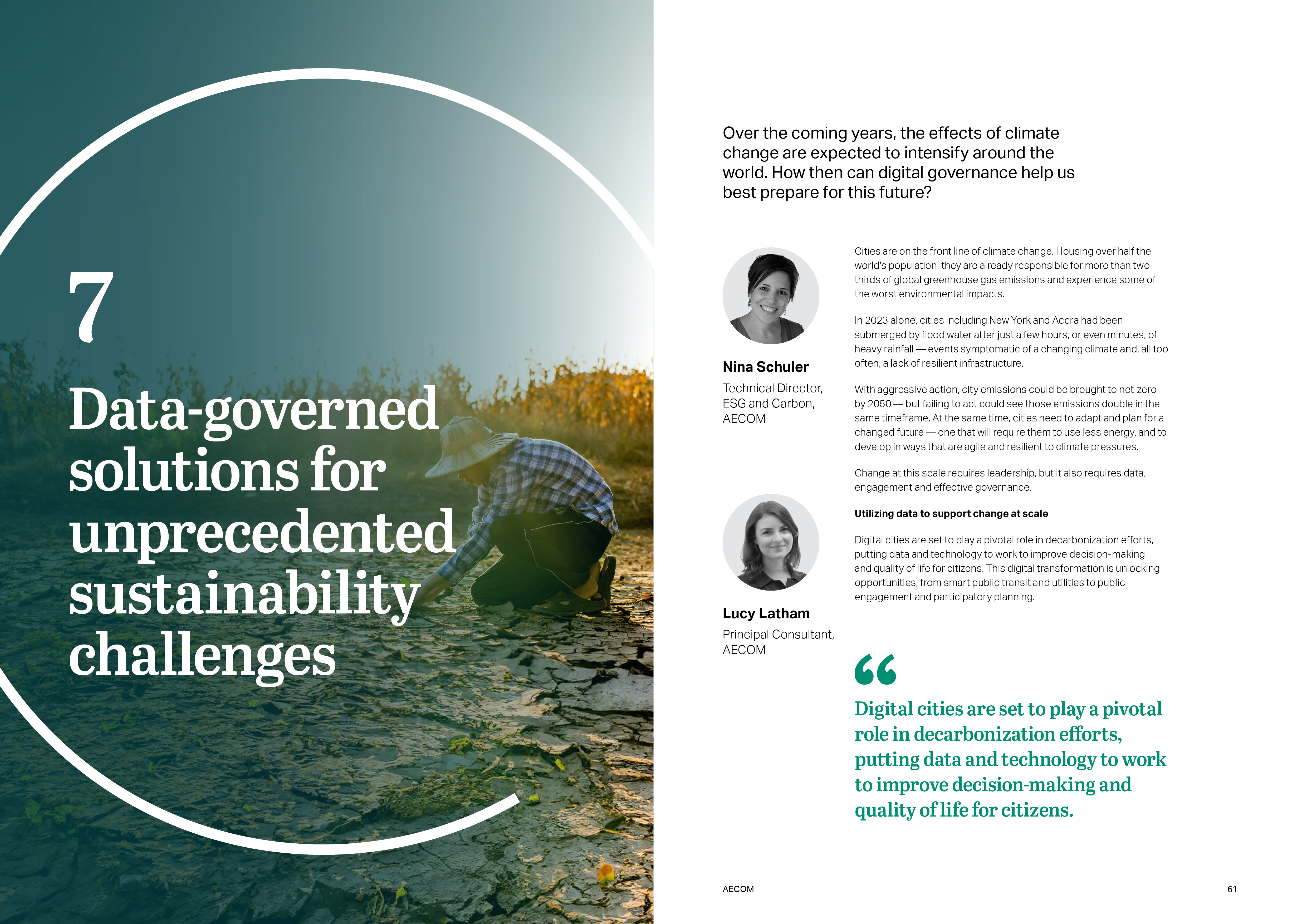 In the chapter “Data-governed solutions for unprecedented sustainability challenges”, AECOM looks at how cities can adopt a data-centric approach, such as ScopeXTM, to improve decision making and quality of life within the context of climate change mitigation. Case studies from the Swedish capital of Stockholm and the Indonesian town of Slawi show how digital tools can be used to empower both city officials and citizens alike.