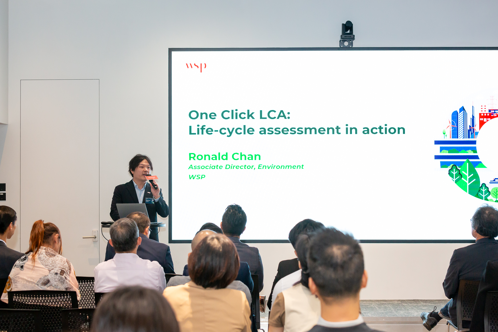 A standout feature of the event was the introduction of OneClick, a globally recognised sustainable platform designed to enable clients to conduct comprehensive lifecycle assessments. Introduced by Mr Ronald CHAN, WSP’s Associate Director of Environment, this tool exemplifies WSP’s commitment to leveraging technology to enhance energy efficiency. Mr Alex WAN, WSP’s Managing Director of Smart Solutions and Advanced Engineering in Asia, also showcased the firm’s digital capabilities and success stories, demonstrating how innovative technologies can effectively drive sustainability initiatives across various sectors.