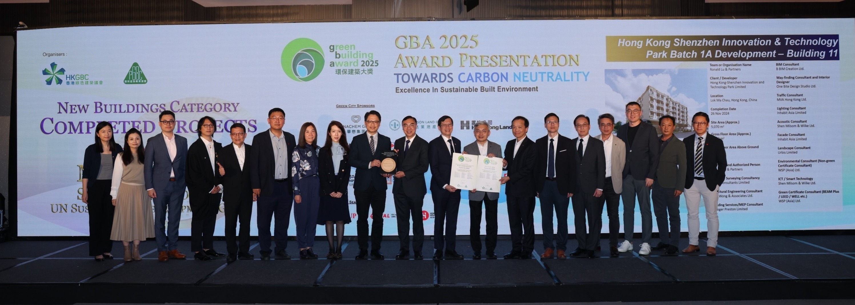 Two buildings in Phase 1 development of Hong Kong-Shenzhen Innovation and Technology Park (HSITP) have been awarded at the Green Building Award 2025 this year, further affirming Hong Kong-Shenzhen Innovation and Technology Park Limited’s commitment in sustainable development.