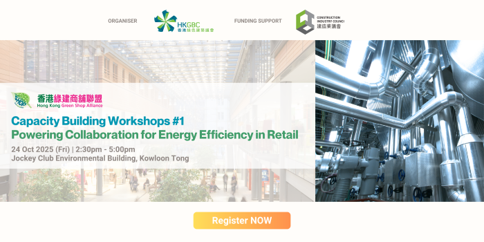 Organised by the Hong Kong Green Building Council (HKGBC) and funded by the Construction Industry Council (CIC), the Hong Kong Green Shop Alliance (HKGSA) is pleased to launch a series of Capacity Building Workshops exclusively for HKGSA Members. These Workshops are designed to deepen Members’ understanding of emerging sustainability trends in the retail sector, covering topics such as energy and water saving, waste reduction and green procurement. Ultimately, these initiatives aim to enhance environmental performance across the industry and better prepare Members for the forthcoming HKGSA Award in 2026.