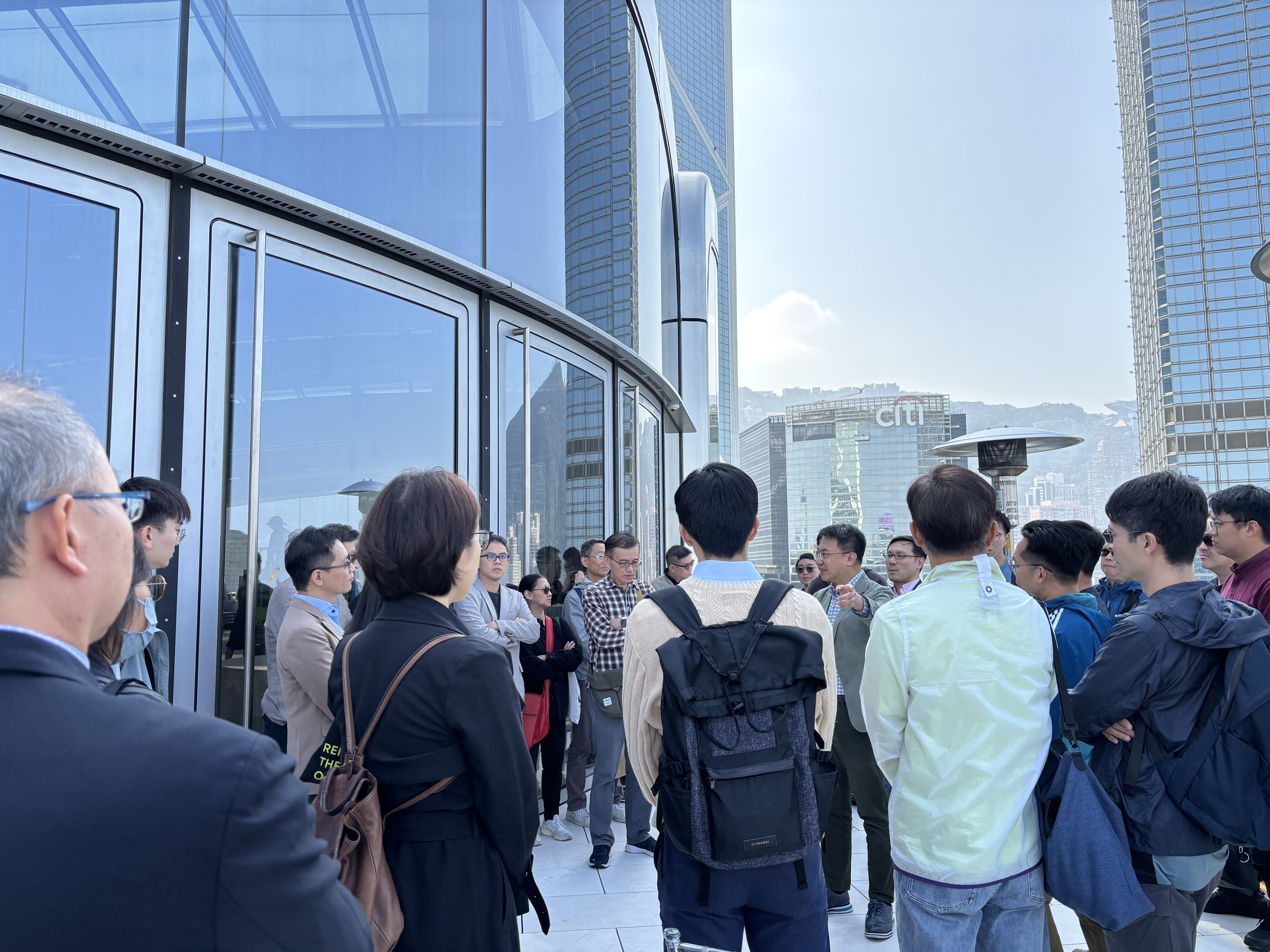 During the guided tour, participants visited Cloud 39, located on the top floor of The Henderson. Hong Kong’s highest all-glass-skylight banquet hall, the venue’s design is inspired by a Bauhinia bud about to blossom. The banquet hall features an 8m-high clear glass ceiling and a column-free layout that offers panoramic views of the city’s skyline. After exploring the interior, the group proceeded to Chater Garden to view the building’s impressive exterior from afar.