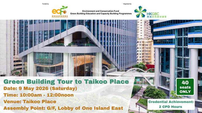 Funded by the Environment and Conservation Fund and organised by the Hong Kong Green Building Council (HKGBC), this programme enables the general public to hear directly from green building designers or operators, allowing them to gain a deeper insight into the green design concepts and operational strategies of some renowned green buildings.
