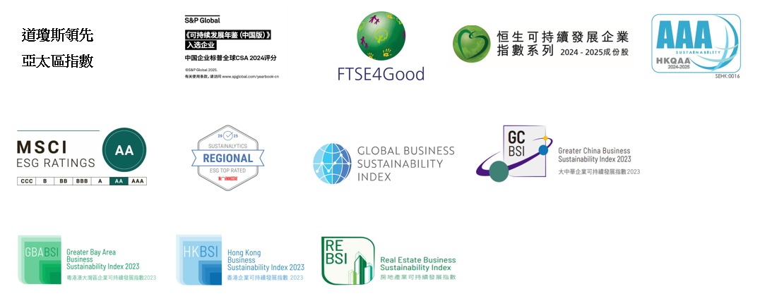 集團在可持續發展方面的努力獲得廣泛認可,在最新MSCI ESG評級中獲提升至「AA」級,並連續兩年入選《道瓊斯領先亞太區指數》與標普全球《可持續發展年鑑2025》。新地亦再度獲晨星Sustainalytics評為亞太區域ESG最高評級企業。