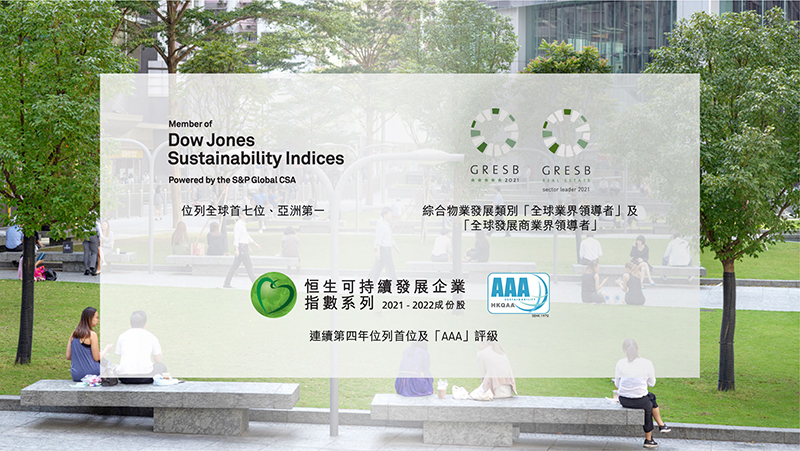 - 全球及區域的認可 — 於道瓊斯可持續發展世界指數中位列全球第七位及榮登亞洲區榜首,並連續第四年蟬聯恒生可持續發展企業指數首位,獲得最高可持續發展評級「AAA」。